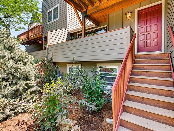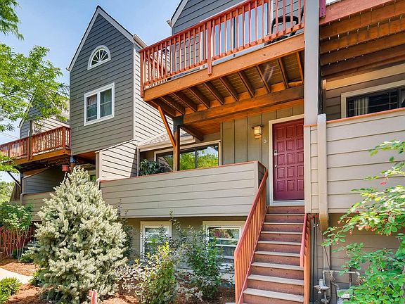 Come and experience the elegant design and fine finishes of this 3 bedroom, 2 bath condo The contemporary and light filled open floor plan features raised ceilings, fireplace, and beautiful hardwood flooring. Step outdoors to one of the 3 inviting porches that overlook the newly landscaped yard with steps leading down to the carport. It's a very private spot, surrounded with mature trees. Perfectly located-walk to Pearl Street, downtown Boulder, trails and 29th Street.