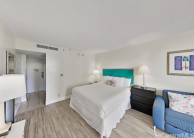 **LEGAL DAILY SHORT-TERM RENTAL** Fully furnished turnkey studio with one dedicated parking stall. Located in a well-managed boutique hotel, the Palms at Waikiki. Great Location! Ideally located just across the street from the beach, Waikiki Yacht Harbor, Hilton lagoon, and the iconic Ilikai Hotel & Hilton Hawaiian Village. Just a few blocks from Magic Island, Ala Moana Shopping Center, Hawaii Convention Center, numerous bars and restaurants, and so much more! Resort amenities include a pool, sundeck, BBQ area, fitness center, and an IHOP located in the lobby. Currently operating as a privately managed short-term rental. Annual Income Statement attached as a supplement.