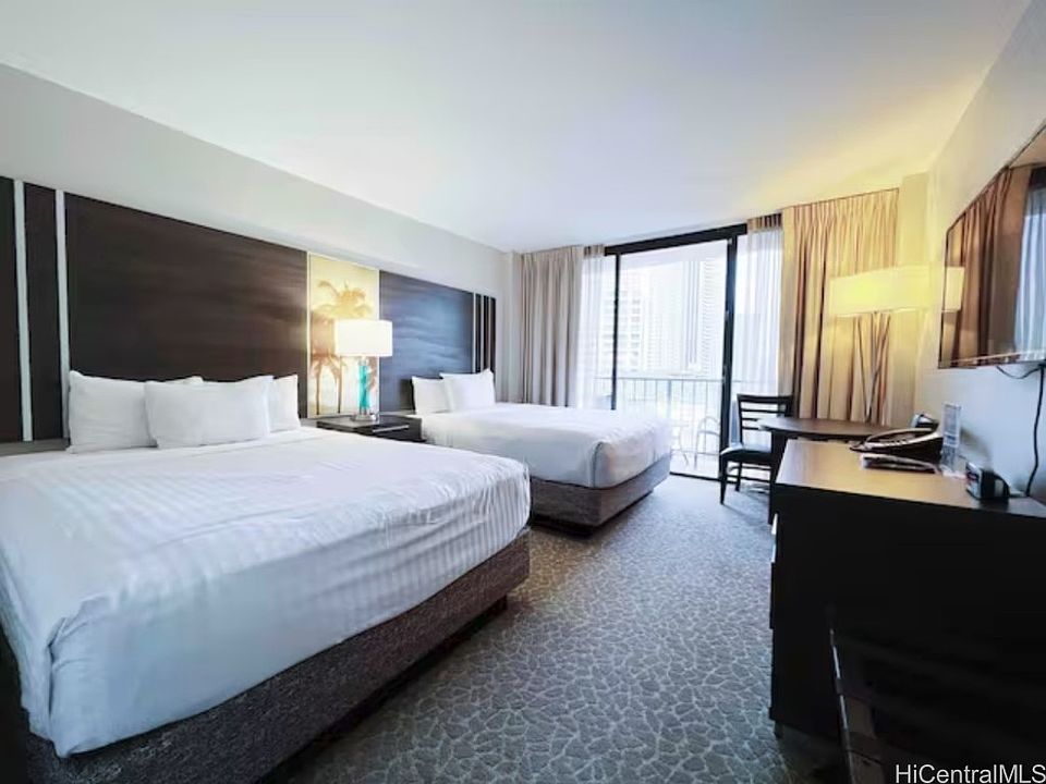 Fully renovated in 2020, this studio offers a stunning city view within the sought-after Palms At Waikiki. This turnkey short-term rental opportunity presents a well-managed "boutique" Condotel, ideally situated across from Fort DeRussy and the beach, with close proximity to Ala Moana Center. This unit boasts two beds, a full bath, a kitchenette, and an expansive lanai. Monthly maintenance fees cover all utilities, including central AC, electricity, internet, cable TV, water, and sewer, making it an ideal vacation getaway, investment property, or second home. Available now for immediate occupancy.