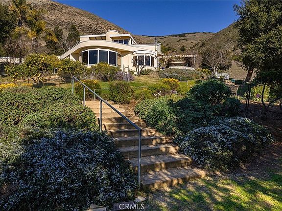 This Mid-Century Modern classic with forever views is located in San Luis Obispo's "banana belt" micro-climate above Johnson Avenue. Three bedroom, 2 1/2 bath main home with an ADU for additional income or guests. 2747 sq. ft. of living space (not counting the ADU) with a wood burning fireplace in the Family Room. A unique home with lots of upgrades. Owned solar system (approximately 6 years old), new electrical panels, Hardy board siding, Indoor laundry, updated Primary suite bathroom, KitchenAid appliances, Jennair cook top, and more. Outdoor patios and gardens with views to enjoy unbelievable sunsets. Shared driveway and bridge that have been recently redone bring you up to 2 two car garages with lots of extra storage. The ADU comes with it's own washer/dryer to make this a turnkey unit. 22 GPM well, so say goodbye to water bills. All information deemed reliable, buyer to investigate.