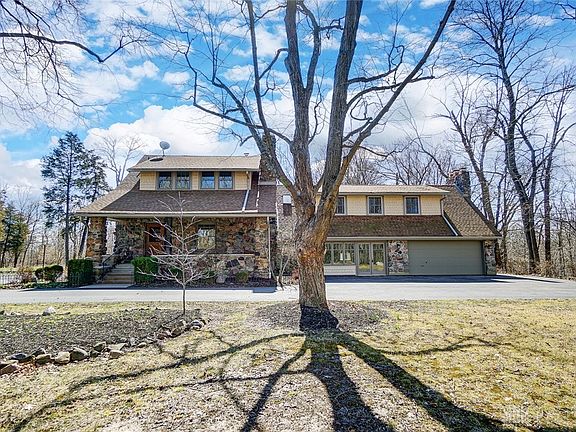 The 4-car garage was split to create a home business which has about 400 sq. ft. (easy to convert back to a 4-car garage). Circular driveway with parking pad. The original home was quality built in 1925 later expanded with a modern addition featuring a 40' X 19' Great room. The gross living area is approx. 3,400 sq. ft. with 3 bedrooms and 3 full baths. Chef's Delight Kitchen with granite countertops, stainless steel appliances and a 5-burner commercial quality gas range with convection oven. Expansive covered front porch. 9' ceilings on main level with lots of beautiful hardwood flooring. 3 fireplaces. Heat pump with humidifier, 2 hvac units & propane gas. City water and sanitary sewer. Part finished walk-up basement to exterior with glass block windows, full bath and fireplace. *May be possible to build additional homes on this site. Truly a must-see one-of-a-kind home on 7.4 acres.