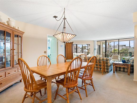 Full-length glass sliders bring the natural light into this spacious 2BR/2BA condo. Peek-a-boo views of river and sunsets from enclosed porch & Florida room. Sold furnished, AS-IS. Harbour Side community offers secured lobby entry, carport parking, extra storage, beautifully landscaped grounds, heated pool with spa, tennis courts, and access to the Moorings private beach.