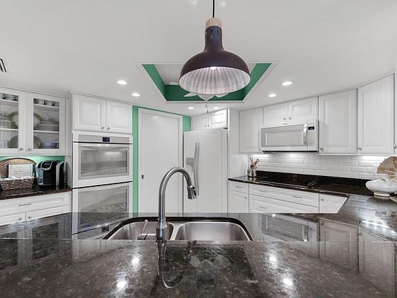 WOW! River views from your Penthouse -enjoy the golden sunsets! Remodeled kitchen, granite, double ovens, subway tile! All tile floors, spacious & bright! Convenient under bldg parking! Gorgeous Moorings granted beach! MUST SEE! Sizes are approx/subj to error.
