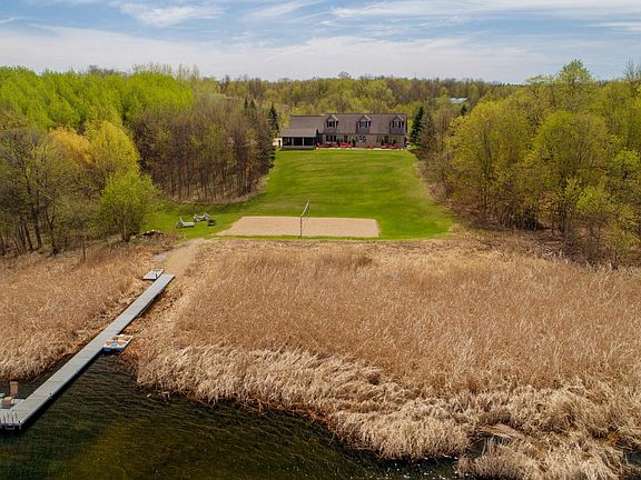 If you are looking for lakeshore, acreage, space, storage, beautiful home look no further! This property is amazing with so much to offer! You have a large sprawling home that sits on 34 acres and over looks Lake Lobster! This luxurious home boasts features such as open floor plan, 57x15 aggregate patio, Large owners suite, gazebo with a hot tub, sauna and views from every room! The land has miles of groomed trails, large pole barn 40x60, detached garage, fruit trees and wildlife galore deer, turkeys and many varieties of birds! Don't forget the sand Volleyball court off the waters edge! Lobster lake is 1300 acres and is deep, clean great for boating and fishing! Don't forget to look for Annie under the dock a huge muskie! This property has about everything you could want!