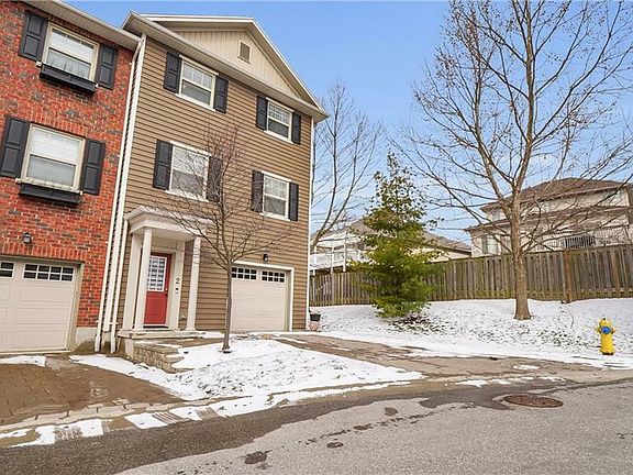 Welcome to THE RIDGE, a beautiful and desirable condo community tucked away from all the hustle and bustle. This meticulously maintained and upgraded end-unit has so much to offer; including 3 spacious bedrooms, Master with ensuite and walk-in closet, large living room, stylish kitchen with island, generous dining room area with extra windows, granite countertops, crown moulding, stainless steel appliances, quaint balcony perfect for enjoying that morning coffee, convenient laundry, first floor storage room, a spacious garage you can park two cars deep + additional storage. Convenient location close to all amenities and you're just a stone's throw away from nature with pond and trail nearby. Clara Brenton elementary school catchment with bus eligibility!