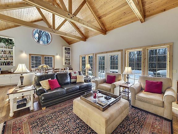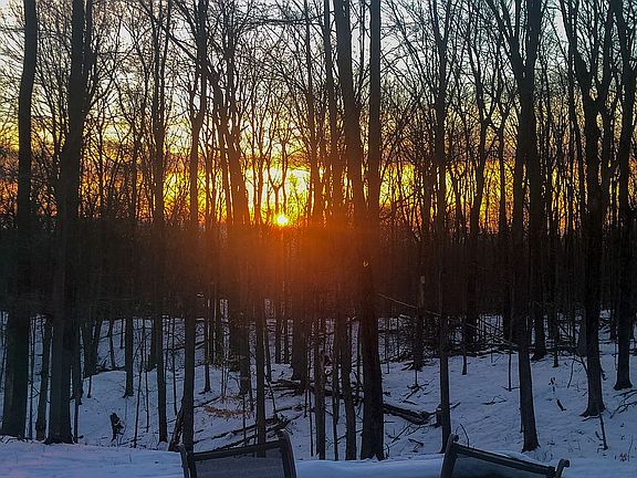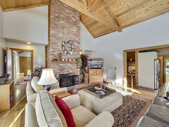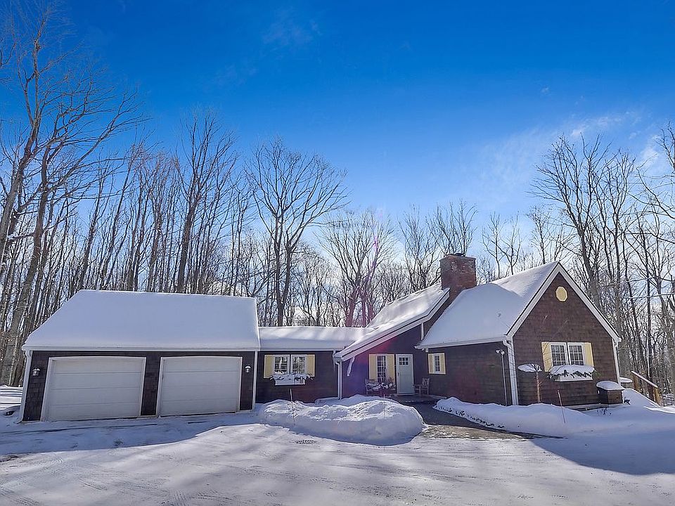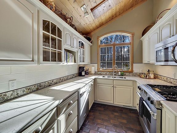 Charming, private & bright, this 4BR/3BA Birchwood home is located on a cul-de-sac in the woods, overlooking a scenic ravine, yet close to the clubhouse. The open floor plan with vaulted ceilings and rustic timbers provides excellent space for entertaining. Enjoy the beautiful brick fireplace on a cold winter evenings (or cool summer evenings) in the great room or the one in the Master Bedroom. The wrap around deck provides plenty of outdoor entertaining space and overlooks the large wooded lot and very scenic ravine. Hardwood flooring, tiled entrance and kitchen, complete this lovely home. New master bath with 2nd laundry, heated floors & spacious walk-in shower; newer, expanded kitchen with quartz countertops, tile backsplash, gas cooking & stainless appliances. Landscaping has been freshened up and trees were thinned to provide lots of light in the home. Fourth lower level bedroom is used as a family room. Second main floor bedroom is used as an office. A little bonus - seasonal peaks of the bay and gorgeous winter sunsets. Monthly dues of $424 provides all Birchwood amenities; $10,000 initiation fee due at closing. Property is owned by a licensed Michigan Realtor.