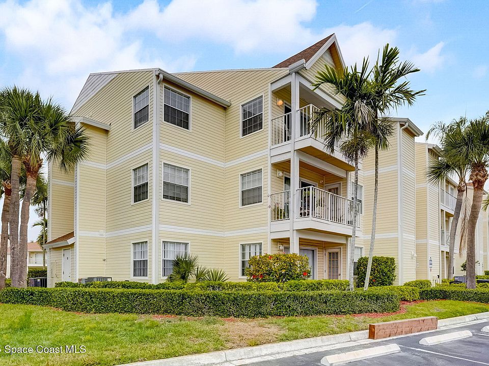 Experience the best of coastal living in this charming 2-bedroom, 2-bathroom condo, perfectly situated just moments from the beach, vibrant dining, and boutique shopping. With no rental restrictions, this property offers exceptional flexibility — rent it out daily, weekly, or monthly as a true investment opportunity. Live in it part-time and generate income when you're away, or make it your full-time seaside sanctuary! This condo is also an ideal housing option for Florida Tech students. Provide your student with a comfortable home while retaining the option to rent it out during summers and holidays. Inside, you'll be welcomed by vaulted cathedral ceilings and beachy ''sea salt'' painted walls, creating an airy and inviting atmosphere. Ceiling fans in all rooms and a sliding screen at the main entry allow coastal breezes to flow freely through your space. The beautiful porcelain tile flooring adds a touch of elegance, while the spacious laundry room provides ample space for a full-size washer and dryer, along with extra storage on the built-in shelving.