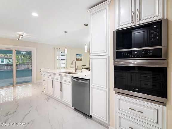 Gorgeous 4 bedroom Palm bay home.Brand new Roof (being put on now)New A/C & New Water HeaterNew updated kitchen with Stainless steel appliances & quartz counters Upgraded cabinets. Eye popping back splash. Dining and living room area offers large space for big family/friends get togethers.New title floors are amazing.New upgraded bathrooms gives them a resort style. This fenced-in Double lot ( .46 acre) with plenty of room For both an RV and a Boat [drive ways already installed on both sides of property.Kids and pets will have plenty of room.This is one of a kind,Don't miss out on an amazing deal.