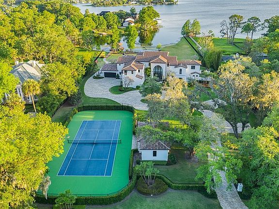 Welcome home to your one-of-a-kind Winter Park Chain of Lakes Estate. On over 3 acres of land, with a long approach past its own private tennis court, this gorgeous Lake Maitland gated residence offers nearly 8,000 total square feet of luxurious living space. Built by John Gigliotti, founder of Liberty Development, and designed by Wolfe-Rizor Interiors, quality abounds throughout this six-bedroom, six-and-two-half-bath modern masterpiece. The winner of the Grand Aurora Award for Best Kitchen, every detail has been meticulously selected. From the custom-designed copper vent head to the black leathered granite countertops with Thermador appliances, the stunning kitchen is truly a chef's delight. The butler's pantry includes a full-size commercial refrigerator and freezer and spacious area for a breakfast bar or catering station. Not to be outdone, the stunning master retreat is a welcome escape with a private outdoor spa and sitting area. An expansive patio, sparkling pool, spa and summer kitchen with a Wolf grill, Sub-Zero appliances and separate fire pit allow for effortless entertaining. Along with the tennis court is a putting green that is perfect for enjoying the outdoor Florida lifestyle. The spacious four-car garage provides extra storage space, and an 800-square-foot dock holds two boats. A 620-square-foot guest apartment is ideal for hosting guests with its own kitchen, laundry and separate entrance. Breathtaking views and a luxury lifestyle await you. Call me for your private showing today.