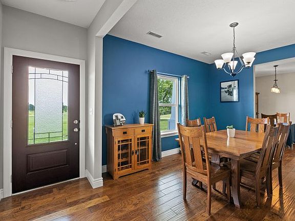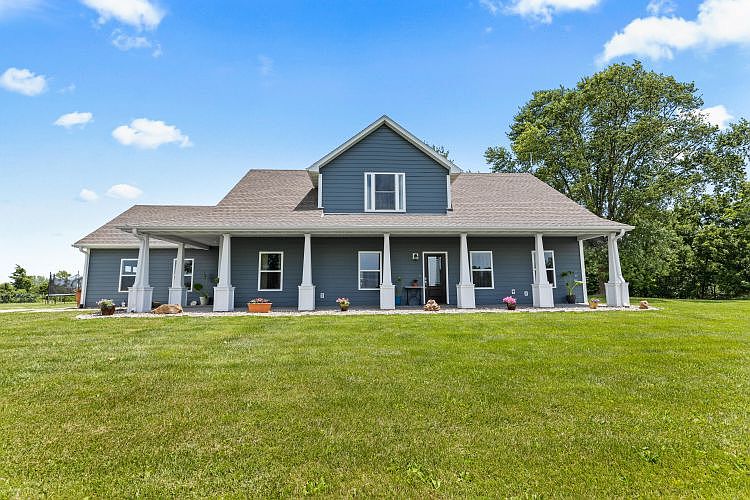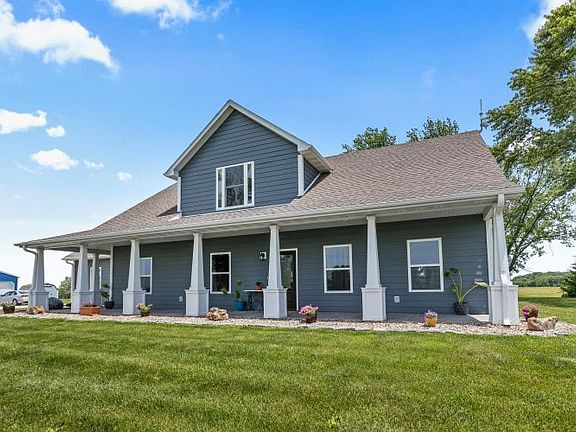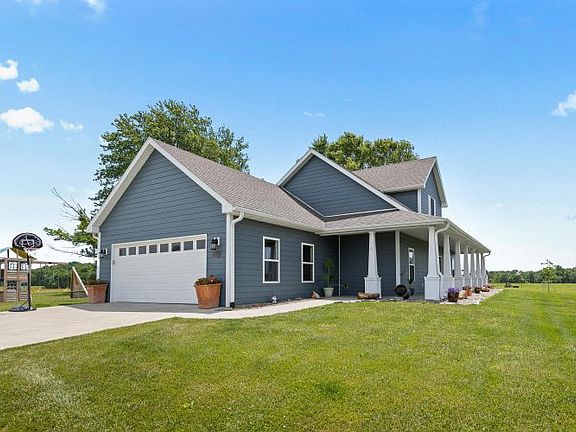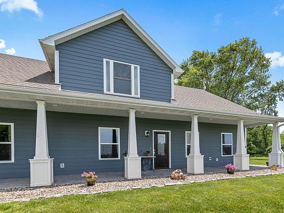 Custom built home on 10.46 acres. Lovely covered porch invites you to sit and enjoy the sunsets. Enjoy the wood floors on the main floor as well as the big kitchen with breakfast area. The formal dining room is open to the living room with a beautiful view of the backyard. Enjoy the gas fireplace in the winter. Main floor master suite is oversized to allow for a reading nook in by the back windows. Walk-in shower is onyx to make for easy cleaning. Upstairs is another living area as well as BR 2&3. Walk in storage area in the attic makes getting to your seasonal items easy. Patio has been extended in the back. Don't forget about the detached 24x32 shop with electricity. The property offers a fenced garden space as well. Low utility bills will be your normal with the geothermal HVAC system.