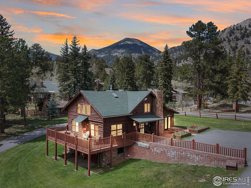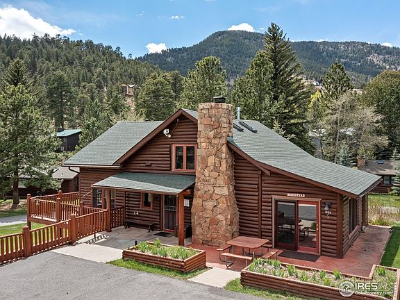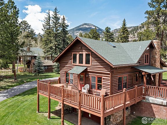 Quintessential cabin-style log home in Estes Park, with transferable Short Term Rental License! The Homestead cabin is located just west of town and offers a classic design, both inside and out. Native stone fireplace anchors the curb-appeal and draws you into a welcoming patio and huge deck. Inside you'll find a well-equipped kitchen, wonderful living room and gathering spaces, a main level bedroom & bath and then 2 more bedrooms & bath upstairs. Lower level walk-out with game room and home office/studio space, as well as lots of storage. Offered fully furnished at $750,000.