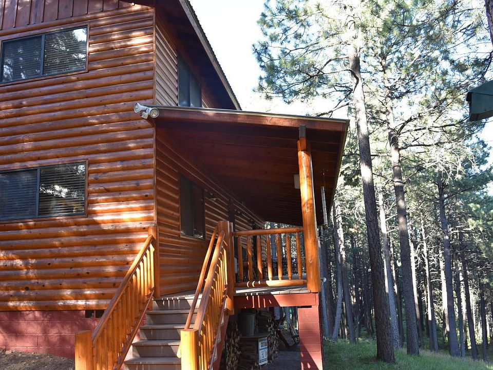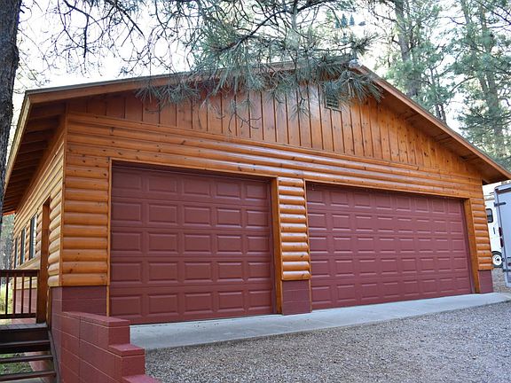 The cabin with everything! Stunning log sided cabin with a massive 34'x30' detached garage on a very private cul de sac lot! No expense was spared in the construction of this very special place. The great room has a dramatic window wall with a real wood fireplace with a floor to ceiling stone hearth and gnarly log mantle. Beautiful knotty pine T&G beamed ceilings and wainscot throughout. Unwind to the sounds of nature on the massive Trex deck. Enjoy the summer monsoon storms and huge towering Ponderosa Pine Forest from under the large covered deck area. You have plenty of room for family and guests at this great place. Two large guest bedrooms and a big guest bathroom with two vanities and sinks. The master bedroom suite has a large walk-in closet, big master bathroom with double sinks.