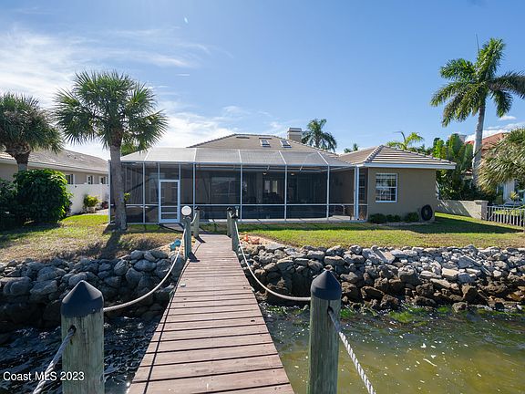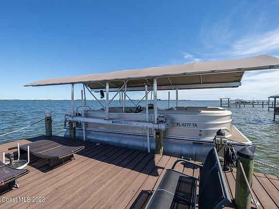 RIVERFRONT POOL HOME, the perfect BOATERS PARADISE with 5 foot draft at the end of the 160ft Dock with a new 10k lbs Boat lift. NEW ROOF 2024 with 25 Year non prorated transferrable Warranty. A kayak deck for easy on and off. Enjoy a day on the water and relax pool side with dinner overlooking the Banana River. Open the large sliders that make your home flow from indoor to outdoor living, light the gas fireplace giving you the feel of a cool evening Caribbean resort. Tall ceilings, and new tile plank flooring, create the perfection of resort home. Easy maintenance home with rock sea wall, heated pool and granite kitchen counters, Convenient location within minutes of the beach and with easy access to I-95 and the Orlando attractions.