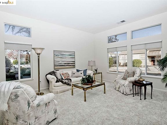 Enjoy amazing Mt. Diablo sunsets from your own back windows! Beautifully appointed home in Summerset 1 overlooks the 9th hole. Black granite countertops, designer window coverings, extra plush carpets, Jacuzzi tub Extended length, covered patio. Two car garage plus golf cart garage.