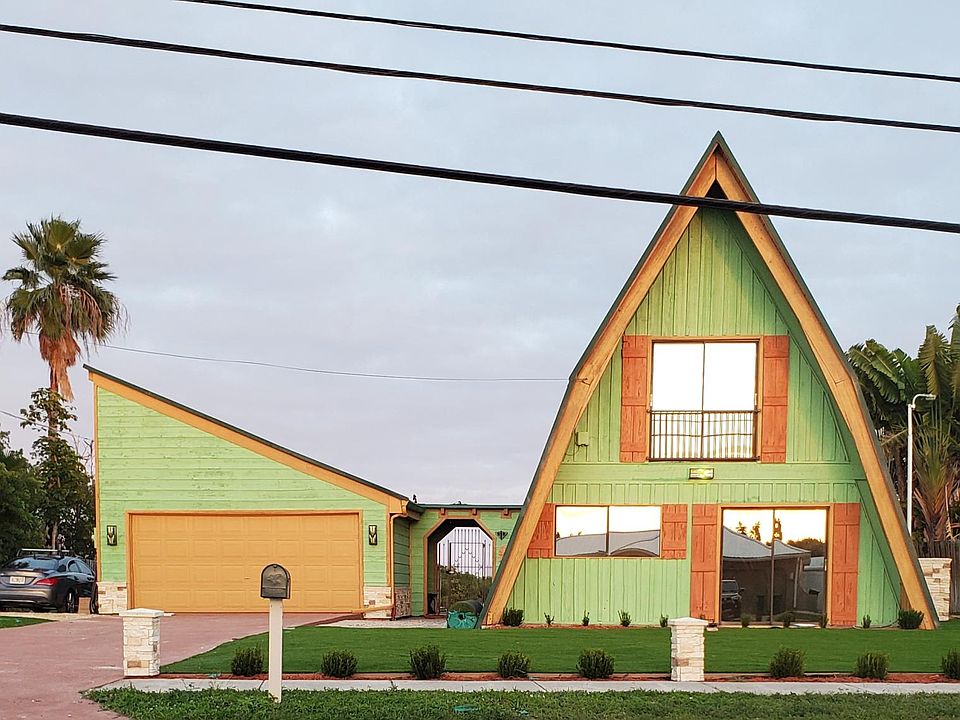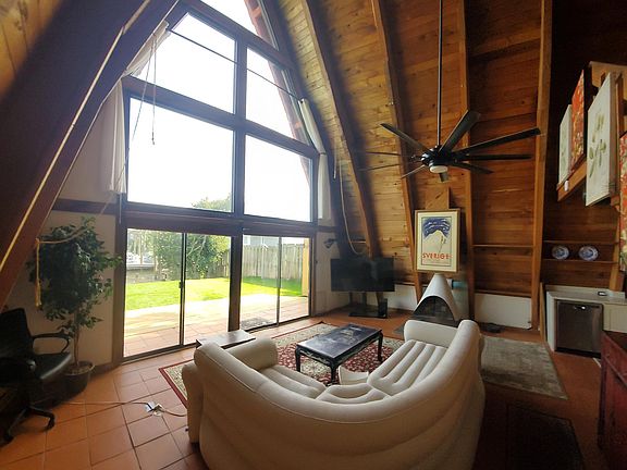 Post and beam A-frame dwelling connected via breezeway to singleslope garage. Seventy-five feet of waterfront and boathouse with 2,500 pound lift. Three story window-walled cathedral ceiling living room with Banana River, Cape Canaveral, and Cocoa Beach views. Watch Canaveral rockets arch across the skies, jumping fish, and pelicans perched majestically on pier footings, all from the comfort of your living room. Recently rehabbed exterior and landscaping. Renovated kitchen and bathrooms. Six month furnished option. By appointment. No smoking indoors.