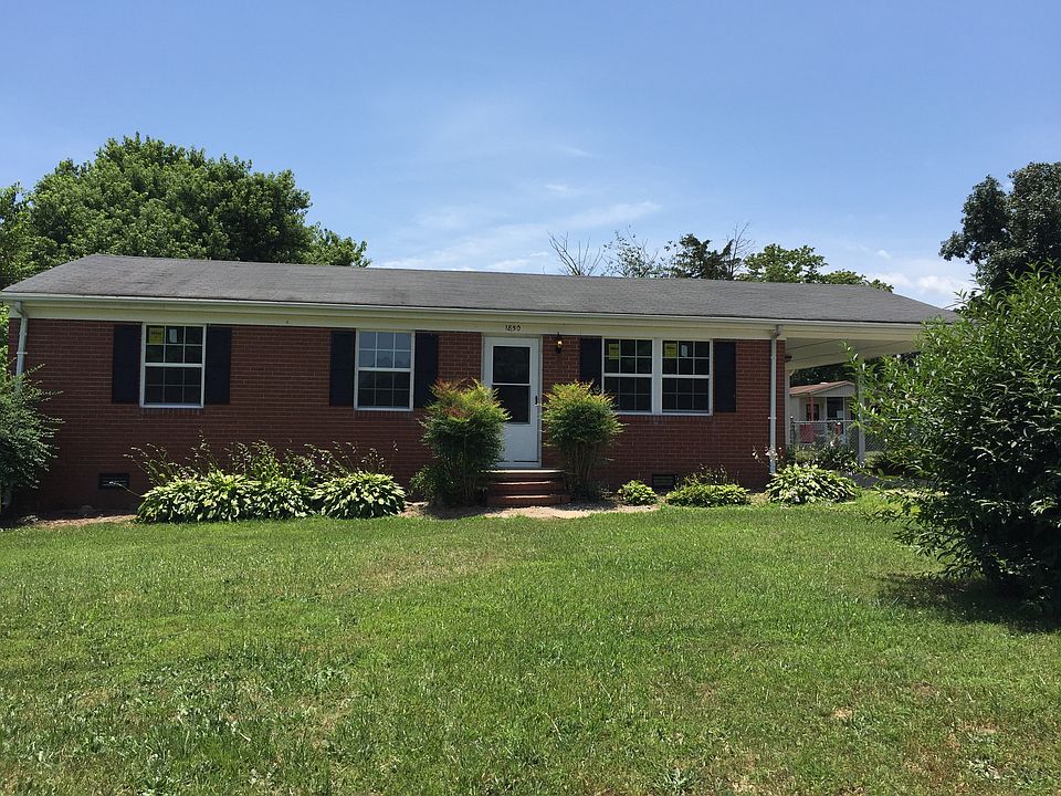 Brick ranch with 3 bedrooms, 1 baths, new carport in living room, bedrooms and hall, new laminate flooring in kitchen, dining area and bath room, new vinyl replacement windows, outbuilding, attached carport and fenced back yard.
