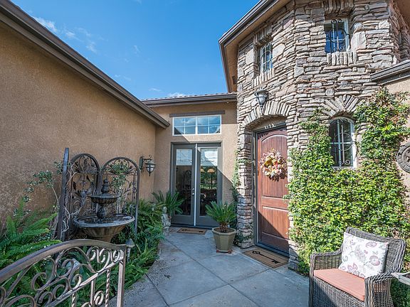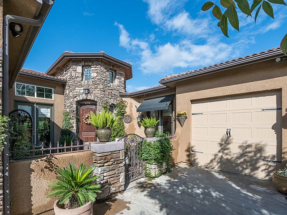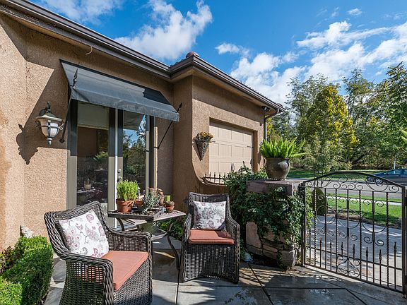 One of a kind! This remarkable home has all the amenities you're looking for and more! Directly across the street you'll see the paved walking trail and creek with luscious trees surrounding. The beautiful courtyard entry leads you into the home where custom work can be seen throughout. Upon entering, you'll find a large isolated bedroom with French doors leading out to the courtyard area and a separate bath with custom shower, perfect for a mother-in-law suite. The formal dining room also has French doors leading out to the courtyard area as well. The custom kitchen has upgraded cabinetry and range along with dark granite counter tops, and breakfast bar opening up to the great room with built in cabinets and hardwood flooring throughout. The beautifully landscaped backyard includes a large patio with custom awnings, mature trees, grass area, and sparkling pool with a soothing waterfall feature, perfect for those warm summer nights. This home truly has it all!