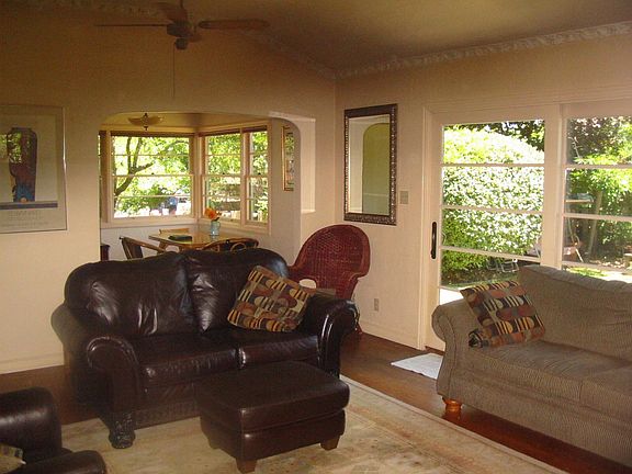 OPEN HOUSE Friday, 7/10 5:30-7 PM Extraordinary vintage 1930's 2x1.5 baths + studio/office/bedroom. Jr. College area. Beautiful private garden courtyard with outdoor fireplace under large oak and indoor fireplace. Large fenced backyard with growing vegetable garden including tomatoes and other veggies. See pictures for the unique interior with parquet floors and plaster ceiling ornamentation. Washer and dryer (Miele). Range included. Frig available from tenant. Garden storage room. Sprinkler system with part time well. Walking distance to JC, Community Market, Safeway, many restaurants and shops. Easy access to downtown and 101 but quiet distance away. $1.79 per sq/ft. Will consider 1 small, mature, housebroken dog or cat with pet deposit. No pets that can harm property. Please do not disturb tenant.