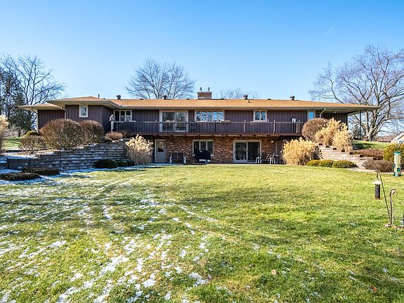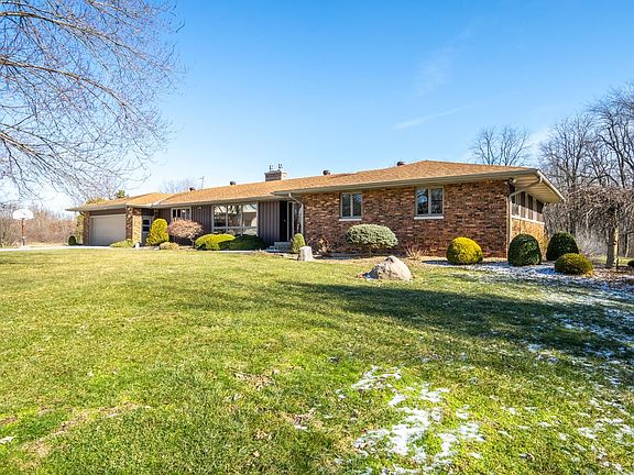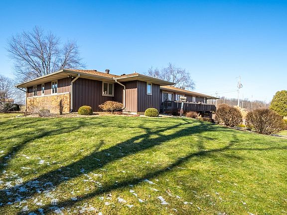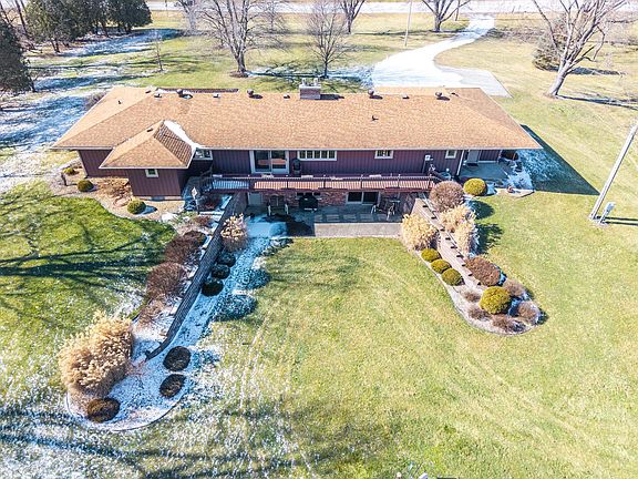 . 4 bedrooms 3 ½ bath home with 4032 sq ft on 10.4 landscaped acres. The main floor features new paint, flooring, newer kitchen cabinets, quartz counters, newer appliances: dishwasher, electric stove, microwave and refrigerator. Built in desk and a pantry with pull out shelves. Family room with a brick floor to ceiling gas log fireplace and patio door that leads to the back deck. Dining room with built in hutch and a formal living room. All 4 bedrooms and 2 ½ bathrooms on the main floor. Master bath has double sinks, and a newer walk-in shower and a separate tub, master bedroom has his & hers closets. Guest bath has a jetted tub. Laundry room and ½ bath with washer & electric dryer. 2 car attached garage with epoxy floor. Basement has the third full bathroom and 2nd kitchen with dishwasher, electric stove, microwave and refrigerator. Slider door walks out to the lower-level patio area. Big rec room with wood ceilings and wall accents, 2 more rooms that could be used for an office and work out room. Another brick floor to ceiling fireplace with gas logs. Wine or fruit cellar with sump pump with battery backup. Home has solid wood doors/trim and newer windows. The detached barn is 40x56 and has 2 overhead doors (18x10, 10x10), a back slider door for animal access, plus 2 frost free hydrants. Property has several apple trees, garden area and is a game sanctuary for deer & turkey. REMC electric and high-speed internet is available.