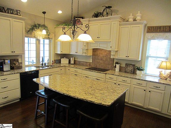 See all of our other great listings at www.GreenvilleSCHomeSearch.com . Privacy and space is yours... workshop/ office and a custom built home all on one level. 2 acres offer a level lot with trees and privacy. Life is good on the 24x16 screen porch. Excellent rm for garden, and there is a green house if you want it. Fruit trees, flowers, Blueberry bushes all in place. Grow your own food or return to nature and enjoy the space. Cooks kitchen is perfect for gathering around the granite top counters with a island and rm for high top chairs. Custom cabinets with many extra features. A real treat is the Hartland wood cook stove if you really want to live country style. Yes there is a double electric oven too and smooth cook top. Appliance garages and large pantry that even has a desk and chair. Step into the sauna in the hall bath and relax and stay healthy. Central Vacuum for quick clean ups. Split Bedroom Plan allows privacy. One bedroom has doorway to the hall bath. All hardwood floors throughout other than baths with stone tile floors. Floor heat has been pre installed in the kitchen under the floor. Three car garage offers so much storage. Two attached to the house and one attached by a breeze way with heated office and full bath partially ready, just needs a hot water heater. Aprox 168 sq ft heated. Over sized workshop garage with very high ceilings and second level storage space. Full electric and insulated. Outside there is place for your RV with electric and water and sewer hook ups. Extra parking space and turn around. Above ground pool is nearly new. Stone walk ways and a Pergola is great for out door living. If you are into chickens, you can have them there too. Well is approx 600 ft deep at 12 gal a min. Hand pump included if you lose power. Very rural setting yet not more than 15 min to convenient stores and shopping. Not a neighborhood. Only come see this home if you are ready for county living with space. It could be your little piece of paradise.