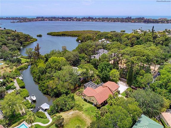 West of Trail Near Siesta Key...Over 1/2 acre Private Estate Home Completely Re-Built in 2016. Salt Water Canal, Florida Lifestyle. Exquisite 4 bedroom 3 bathroom, Plenty of room for a boat and jet ski, . This sprawling home features an All New Chef's Gourmet kitchen fully loaded with New Viking Appliances. What a great use of space with soaring 14' high vaulted ceilings, Large open plan, Guest suite and Master Suite all on the 1st Level. Stroll onto the covered patio for a dip into the swimming pool, after a long day on the boat. Cozy up to the custom fireplace inside or the fire-pit in the yard. For the boater, there is a boat dock, jet ski floating dock. This impeccable home was completely re-built in 2016 and is virtually a New Home. New Barrel Tile Roof! A true Masterpiece on Little Sarasota Bay. No deed restrictions. No HOA and plenty of room to park all of your toys. The Canal was recently dredged in 2017. Multi-Generational Living Guest Suite with kitchen.