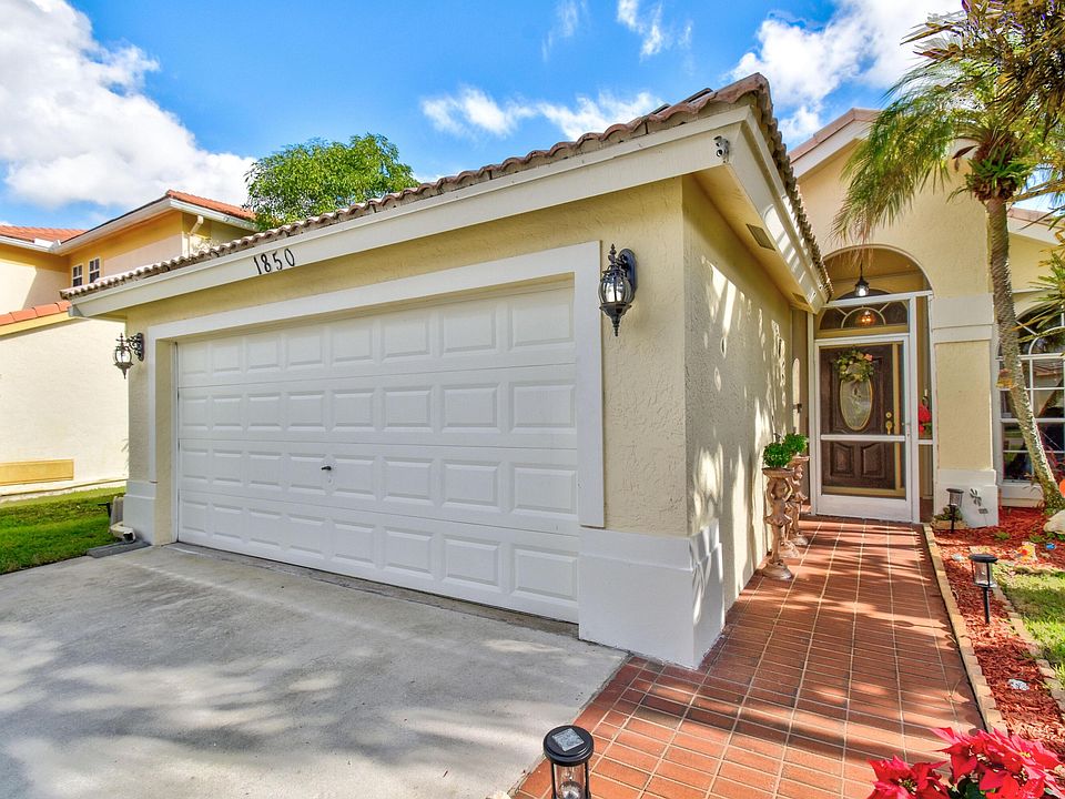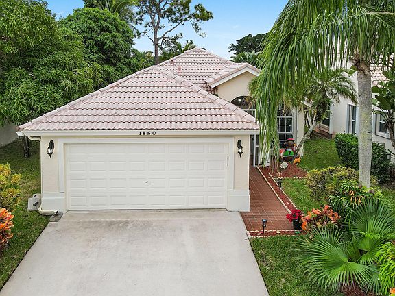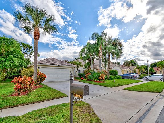 Charming 3/2 1,860 sf. Lennar built CBS home in desirable Lakefield of the Landings at Wellington (North). This home offers a fantastic split floor plan with 2 bedrooms & a bath upfront & the master in the back. As you enter the home you are greeted w/a spacious living/dining area w/a large bay window offering a ton of natural light. The living/dining area opens up to a open kitchen w/corian tops & white cabinets. The kitchen overlooks the covered, screened in lanai surrounded by lush landscaping offering a very private oasis for your enjoyment. This home features tile throughout w/wood in the master bedroom, vaulted ceilings throughout, beautiful archways, his & hers closets & vanities, jacuzzi tub w/separate shower & so much more! If you love fruit trees you will love the 3 mango, 2 coconut, 2 avocado & 2 papaya trees. The screen enclosure has a newer screen (2020), water heater (2 years old), accordions, gutters & the irrigation is on a well. This home is a MUST SEE!!