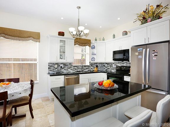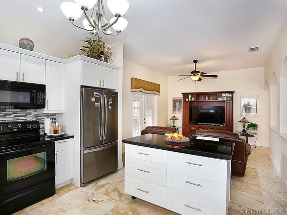 Great opportunity to own this pristine contemporary GEM in gated community close to shopping, turnpike and entrance to Florida Keys. This home has been lovingly cared for, all you need is to bring your toothbrush! Home features new gourmet kitchen with granite counters, new appliances, travertine floors, covered patio, new impact front door, new french back doors, new recess lighting, gutters, side patio and best of all no neighbor behind you! Lower taxes due to NO CDD. HOA fee includes internet, cable TV and alarm. Call today this one won't last!