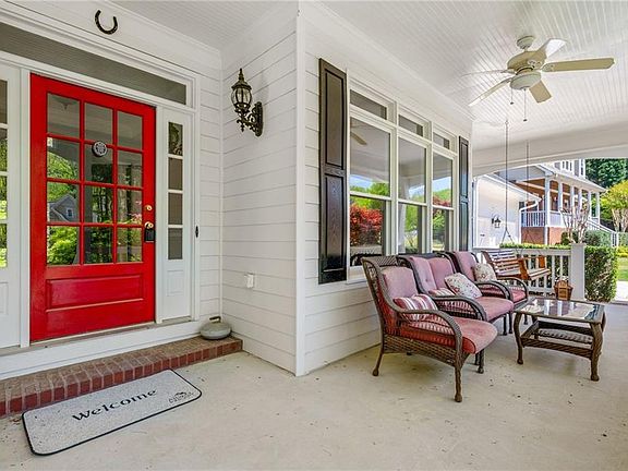 Fabulous Farmhouse Style Beauty with full finished terrace level on private fenced back yard on golf course lot in Foxhall - an active swim/tennis/playground community. Charming rocking chair front porch. Open chef's kitchen with white cabinets and granite counters overlooks the 2 story great room and sunny breakfast room, formal dining room, office, and master on main. 3 large bedrooms upstairs. Finished terrace level with full bath and workshop area. New interior and exterior paint, new roof, 4 side cement siding, laundry room with sink. Pride of Ownership!