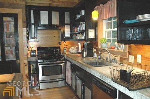 TROUT STREAM RETREAT!! Great full or seasonal living, this 3BR/2BA retreat has over 1000 Ft of trout stream frontage. Extra outdoor Kitchen and deck for relaxing evenings by the stream. Located in No. Habersham with frontage on 2 roads. Pleanty of room for another home or 2 on 8.17 acres. Rustic wood finishes in this well built home. Secluded area only 10 minutes to downtown Clarkesville.