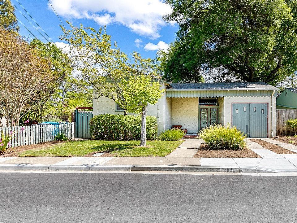 Alluring, gated home built in 1938. As you follow the flagstone path and pass through the architectural wood gate, you enter a private courtyard crowned by an original outdoor flagstone fireplace. The 2 bedroom, 1.5 bath home surrounds you in the essence of the era. The living room has windows on both sides letting in the light and the view of both the courtyard and the backyard. The living room and dining room floors have an inlaid wood design and were just refinished as were the hallway and bedroom floors. The kitchen has many original details, and the stove conveys. The laundry is in a pass-through next to the kitchen and half bathroom. The interior was just repainted to match the era and highlight the decorative moldings on the ceilings of the living room and dining room. The garage was converted to a studio with a storage area on the front side. The back garden has a lovely grassy area, raised beds, a well, mature trees and a magical feeling. JC charm and more.