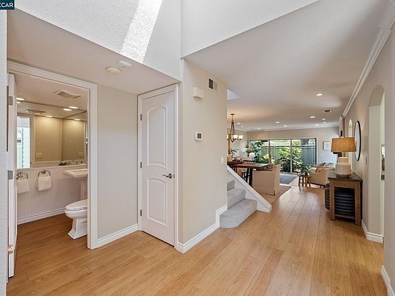 Beautifully updated Walnut Creek home in the sought after Village neighborhood. Formal entry with soaring ceilings leads to open concept dining and living area featuring slate tile fireplace with oversized sliding glass door and windows allowing for awash of natural light. The eat-in kitchen offers banquette seating with storage, white cabinets with granite countertops, a garden window over the sink and stainless-steel appliances, including gas range. Spacious primary suite boasts dual closets (one walk-in), vaulted ceilings and large sliding doors leading to secluded balcony; dual sinks, tile floors, jetted tub and custom shower complete the primary retreat. Large guest bedroom with vaulted ceiling, window seat with storage and adjoining bathroom with shower over tub. Additional features include two car attached garage with laundry, ½ bathroom, laminate flooring, plush carpeting and cozy patio for entertaining. Ideally located near Heather Farms Park, restaurants, shopping and more.