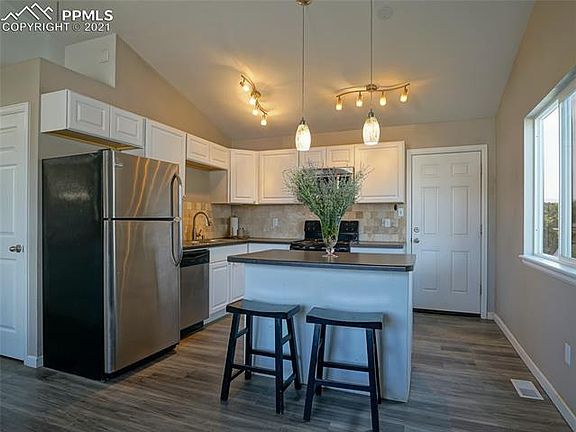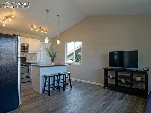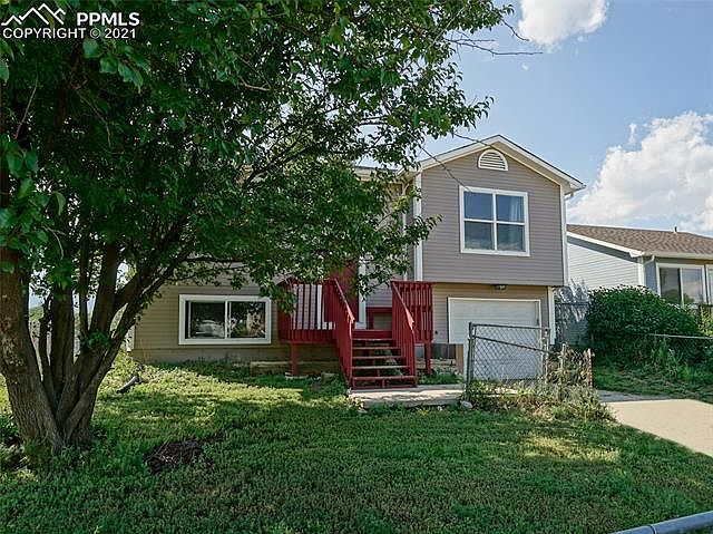 GREAT INVESTMENT!!! Needs a little bit of TLC. 3 bedroom, 2 bath home with attached 1 car garage. Updated kitchen cabinets, countertops, and stainless steel appliances!! Also low maintenance wood laminate floor on main level and new interior paint. The exceptional backyard with deck has amazing views of Pikes Peak and Cheyenne Mountain. Located minutes from Ft Carson, I-25, shopping, restaurants, entertainment, hiking and plenty of outdoor activities close by.