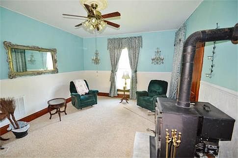 View the Tour Peaceful Setting on 20 Acres Beautiful Grand Victorian Home. 3 large Bedrooms . Rich original heartwood Hardwood Floors. Living Room and mudroom Features Wood pellet Stove. Beautiful Wrap Around Front Porch 2 Barns, 3 greenhouses, 1 beautiful glass greenhouse, fenced in acre garden, KOI Pond City Water, Septic, Propane Gas to Home 1st Floor Laundry Mature Fruit Trees Owen County Schools