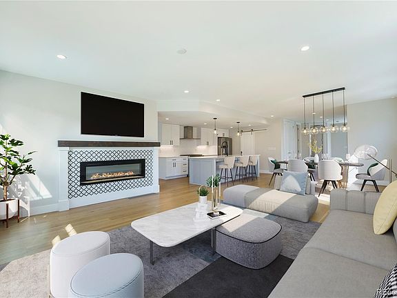 - Description: Great Room Open To The Kitchen And Dining Room With Wide Plank Wood Flooring And Luxury Color Changing In-Wall Gas Fireplace.
