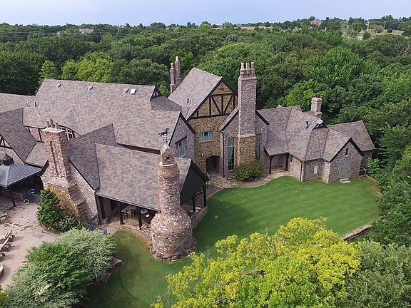 SECLUDED COUNTRY MANOR on 'OAK TREE NATIONAL' Golf Course with Gated Entry and DIRECT ACCESS CART PATH. Nearly 10 Acres of Scenic Views. Timeless and Unsurpassed Craftsmanship. Brent Gibson Design; Occupied by ORIGINAL OWNERS. Rare Imported & Artisan Architectural Features include 2 Grand Staircases with Iron Detail, 18th-Century Fireplace from France, Hand-Made Windows by a Tulsa Artist, Bivey Limestone Floors, Silk Carpet in Master Bed and Honey Onyx Heated Floors in Master Bath. A Favorite Space is the Study which Features LEATHER FLOORS and Private Work-Out Room. Spectacular Outdoor Living is Popular Here with Beautiful Pool and STUNNING GOLF COURSE PANORAMAS. A Treasure Trove of Fine Architectural Elements Placed Throughout Lends Grandeur to this Magnificent Manor. RABBITS, BIRDS and DEER are Enjoyed from the Vast Front Lawn. Truly 'One of a Kind' Estate to be Enjoyed by Generations! Buyer to verify Sq Ft, lot size, Schools, and Taxes.