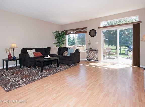 Charming Brookdale model with a spacious living room and combined dining area that's flooded with natural light. The main floor is open and includes gorgeous Pergo floors that lead to a beautiful outdoor brick patio backing up to open area giving you the feeling of a big backyard without the hassle of maintenance! Large master bedroom includes vaulted ceilings and double closets. Located within Oswego 308 school district. This home is a must see!