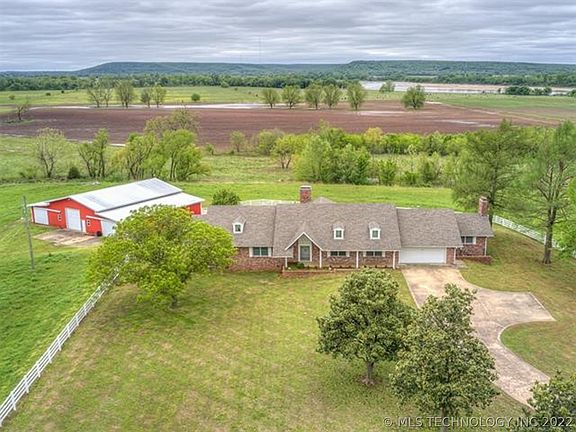 VIEWS OF THE ARKANSAS RIVER IN BROKEN ARROW SCHOOLS! This rare offering features a sprawling 4156 sq ft one story stately home with 4 beds, 4 baths, oversized laundry with mother in law setup with each room having access to a bathroom. 58x61 shop with electric, concrete floors, insulated with a bathroom and a 18 ft x 61 ft lean to for equipment storage. Bring your personal touch and make this the home of your dreams. The land alone is breathtaking, white picket fencing, dead end road and more.