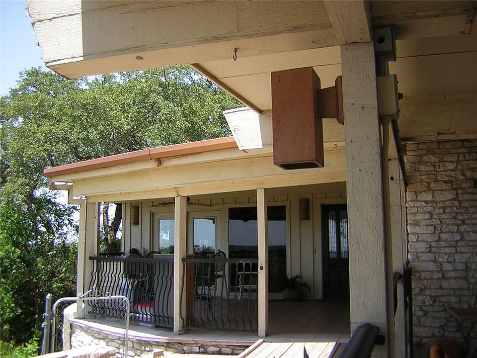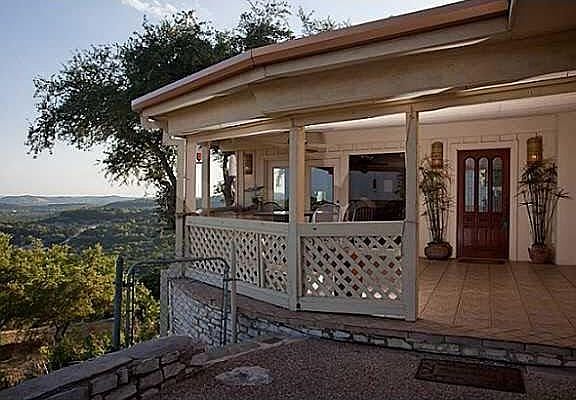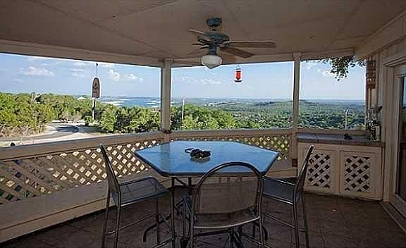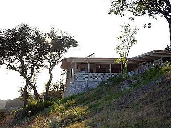 Unique hill country home with panoramic lake ,hill country and sunset views ! Private, potential for additional wrap around decking or negative edge pool. Large country kitchen, loads of storage . Attached storeroom, , and cabinetry and walk in storage/pantry. 3 bdrm, 2 bath, apx 2000 s.f. Some external work in progress.Restrictions: Yes
