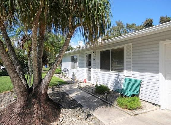 PICTURE PERFECT SAN CARLOS PARK HOME ON BEAUTIFULLY LANDSCAPED LOT! This home is so cute, with great curb appeal. This is a very large (1060 Square Feet) 2 bedroom home, with all rooms providing lots of space to spread out. This home is wonderfully move in ready. Among it's many great features are: new roof (May 2023), new kitchen (Aug 2022), new storm windows (July 2022), city water, 2 new ceiling fans, automatic irrigation system with timer, which can run off city or well water. The backyard is fenced in and there is a large shed. The one car garage is super oversized, and there is a great screened lanai to enjoy your backyard oasis bug free. This great home will not last long, so call today to schedule your appointment!