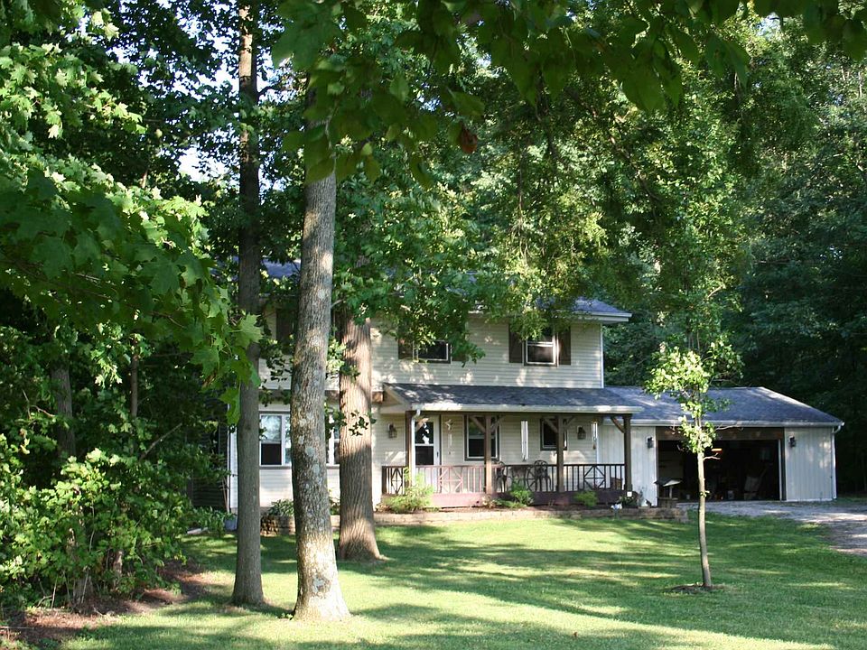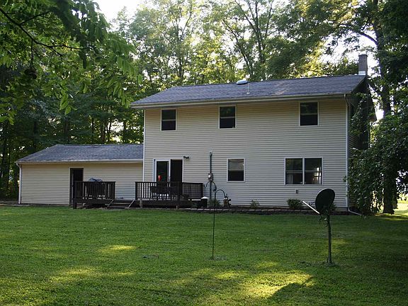 Beautiful setting surrounded by mature trees to provide shade and privacy. This home has much to offer with ample space in 5 bedrooms, a den, formal dining and full basement to be transformed however the new buyer desires. This home has had some fabulous updates including: roof, windows, siding, kitchen cabinetry, front porch and back deck. This property boasts over 3 acres of land in the desirable Leo school area. There is plenty of room for your fall get together and the pole barn is fabulous with so much room for storage and work space.