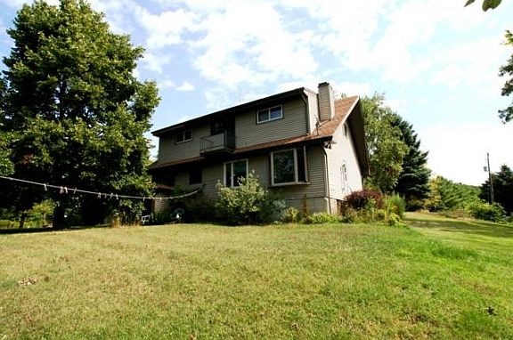 Beautifully landscaped 4 acre setting! Spacious living room. Main level family room w/floor to ceiling brick fireplace, large bowed window for wooded views & opens to kitchen/dinette. Applianced kitchen w/snack counter. Main level master w/full & half bath. 2 spacious upper level bedrooms w/full bath. Full unspoiled walkout LL w/laundry area, 4+/- acres subject to survey. Additional acreage avail.