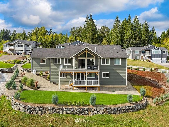 This one is truly special! Welcome to Eagle Springs and some of the best views in the PNW. Built in 2017, this 4 bedroom 3 bath, plus bonus room home is better than new! All the great modern features of new construction, but with the extras done for you. Beautifully landscaped, including a custom water feature. Heat pump provides efficient heat and A/C for year round comfort. Bright and sunny daylight rambler means you have everything you need for one level living plus the full height walk out basement spaces. The stunning views invite you onto the double covered decks year round. Over 3100 sq ft home on over 31,000 sq ft lot, 3 car garage and close to HWY9 and central Arlington. Huge custom home gym, lovely neighborhood. Don't miss it!