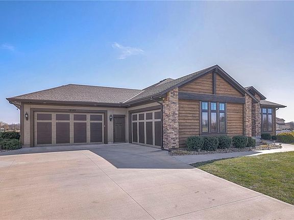Honey Stop The Car! A place to call home..... this gorgeous home is waiting on you!!!! The builder B.L. Reike is well known and respected in this area for his well-built exquisite rustic homes. This gorgeous home is in the sought out area of Sycamore Springs Estates nestled on 3.65 acres that is absolutely gorgeous. This beautiful home has so much to offer, from the exterior of the wood beams and cabin look with a rich rustic look, surrounded with plush grass and beautiful landscaping all around this home. Then you enter into the home to see pure elegance with the open floor plan with beautiful arches trimmed in brick and stone, soaring wood floors, custom cabinets, upgraded Quartz tops, and stainless Steel appliances, trash compactor,2 bedrooms on the main floor, covered screened in porch that can be entered from the kitchen and the main suite. The lower level offers 2 more generous bedrooms with a recreation area with bar that seats 8, gym in the suspended garage, elevator for both floors, and heaters in all the garages. Going down to the lower level has new decorative carpet on the stairs and all new carpet in the lower level, new paint, new gorgeous quartz counter tops, and a new liner coming to the pool. The fun begins when you walk out onto the cool deck concrete with the beautiful heated salt water pool, basketball court, newer storage shed to store all of your pool supplies, and the rod iron fencing surrounding the pool area. This home makes you feel like you are living in Colorado, but in south Olathe:).