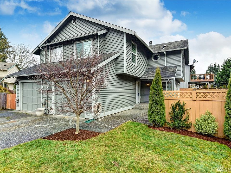 Turn-Key, beautiful townhouse in excellent Bothell location. Home boasts 2 extra large ensuite bedrooms with private bathrooms each & huge closets. Open floorplan that features a cozy wood fireplace, a light & bright kitchen (all appliances stay), dining room with a slider that leads outside. 1/2 bath downstairs, newer laminate flooring on first floor & a convenient attached garage. Home has gorgeous custom window treatments in the entire home that stay! Wonderful front area with large lawn and front deck that is great for entertaining! Close to freeways, shops, restaurants & trails. No HOA's make this the perfect first time home or investment property! Don't wait, this one won't last!!