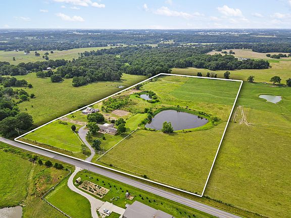 Amazing opportunity to own a 3 bedroom home on almost 20 acres between Mt Vernon and Aurora! This property features a full basement, 2 ponds, 30x30 barn, and a large sunroom! Acreage is partially fenced, mostly cleared, and the ponds are perfect for fishing. Walking up to this brick front home, discover a 2-car garage, front deck area, and a nice asphalt driveway. Inside, an open floor plan living room and kitchen w/ fireplace offers a great space to entertain. Kitchen has ample cabinet and counter space. Primary bedroom boasts two closets and an attached bathroom. 2 more bedroom share a full bathroom. The main floor is completed by two half bathrooms, an additional living area, and a large sunroom. The unfinished basement allows for extra storage, a 2nd fireplace, and so much more! Located only 5 minutes to I-44/Mt Vernon, Aurora, and has great Hwy FF frontage. Call to schedule a tour today!