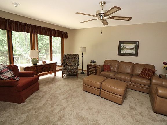 Nice 3 Bdrm 2 1/2 bath ranch in the country on 6.7 private wooded acrs w/partly finshed walkout bsemnt. Enjoy being surrounded by an abundance of nature on a beautiful secluded wooded lot in the country, yet you're just minutes from town! There's a see thru fireplace between the island kitchen and spacious living rm. The windows provide gorgeous views of the pretty, professionally landscaped property, includng a quaint bridge adjoining two paver patios. There's a formal dining rm, a large open foyer and a generous sized Master suite with huge walk-in closet, a bathrm with whrlpool tub and separate shower and there are sliders to your own private patio! The garage has an epoxy floor and large storage closets along the entire length of garage. The walkout basemnt boasts a finshed family rm/game rm, a wet bar in the corner and sliders to the outdrs. There is also a large wrkshop and plenty more storage. Newer are: Frnace, AC, Wtr Htr. You'll love to make this your next Home Sweet Home!
