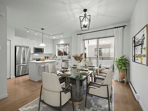 "Clayton Walk" an upscale 1502 sq.ft.3 Bed+Den(easily 4th bed)townhome in one of the most coveted locations in the complex.Bathed in natural light,this layout offers ultimate privacy w/ no direct neighbors&the convenience of street parking at your doorstep. The open-concept main level boasts soaring 9ft ceilings,elegant light flooring,quartz counters&a sunlit living space framed by expansive windows.The designer kitchen stuns w/ an oversized island,premium SS appliances&chic subway tile backsplash.Primary Bedroom w/ dbl sinks,glass shower+ wic.Bonus:powder room on the main,side by side laundry (up)+dbl side by side garage(+pad).Fenced front yard+ arguably the best location. Resort-style amenities: gym & party room. Steps to parks, boutiques & future SkyTrain! This one won't last!