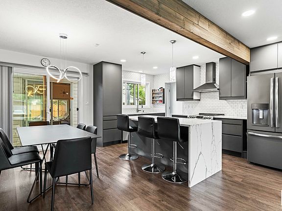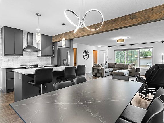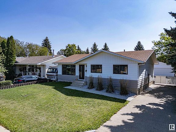 RENOVATED ALDERGROVE GEM ON THE BEST STREET IN THE NEIGHBOURHOOD! This 1275 sq/ft bungalow (plus finished basement) with 4 bedrooms & 2 bathrooms is loaded with incredible updates throughout!. Main level offers an open concept layout with STUNNING kitchen featuring quartz counters, newer black stainless appliances, & cabinetry to ceiling. You will love the updated main floor bathroom & large laundry room with newer washer & dryer. Basement is fully finished with family room, huge rec room, 4th bedroom and renovated 3 piece bath. Other updates include newer furnace & water tank (2020), triple pane windows (2021), shingles (2021), & gutters leaf guard. Relax outside in the sunny South backyard with newer deck, BBQ gas line, & incredible fully enclosed me shed! Oversized insulated double garage is 24'x26' with newer overhead door. Large lot and driveway has plenty of space for RV or trailer parking. Ideal West-End location close to great schools, WEM, Henday, Whitemud & all amenities. Come check it out!