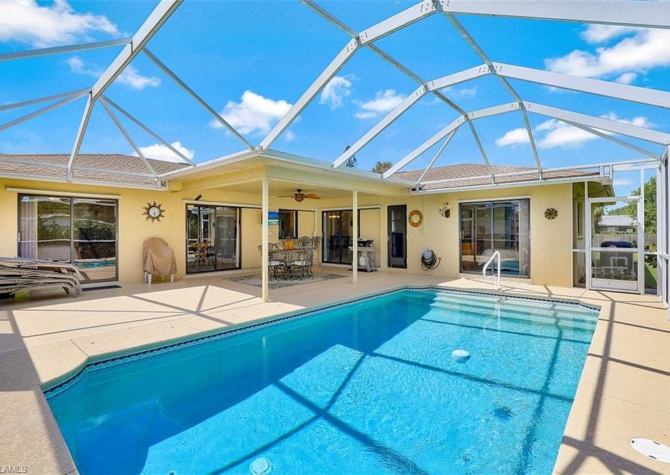 SAN CARLOS PARK UPDATED POOL HOME LOCATED ON 1/2 ACRE IN San Carlos Park. This gorgeous home is situated on 4 lots and offers a spacious lanai and one of the largest yards in the area. Lanai has been tiled and boasts a large pool with a FENCED yard. The home features an updated kitchen with GRANITE countertops, WOOD CABINETRY and STAINLESS STEEL appliances, BREAKFAST BAR, FORMAL DINING ROOM, BREAKFAST ROOM. TWO LIVING AREAS, INTERIOR LAUNDRY ROOM WITH TILE throughout home and INTERIOR HAS RECENTLY BEEN PAINTED. Both MASTER bath and GUEST bathrooms have been beautifully UPDATED as well with everything from new vanities, countertops, lighting and mirrors. South Fort Myers is only minutes away from amenities including shops, dining, and beaches. A big part of what makes San Carlos Park so popular is the low overall cost. NO HOA FEES, NO DEED RESTRICTIONS, NO CDD and County Taxes Only!