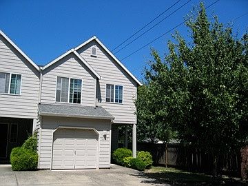 Beautifully updated, exceptionally clean duplex townhouse with neutral color palette, carpeted throughout. Fenced back yard with concrete patio area, single-car garage with opener and room for 2 cars in drive, a surprising amount of storage and large windows with blinds. Downstairs has tiled entry area and coat closet with storage. A half-bath houses full-size, high-efficiency washer-dryer. Kitchen features dark wood floor, tile counters with bar/counter, newer ceramic-top stove, built-in microwave, sink-disposal and all appliances. Living room has accent wall, and a gas fireplace makes it cozy. Sliding door accesses patio/back yard. Upstairs features spacious and private master bedroom with walk-in closet, linen closet and en suite bath. Shared upstairs main bath has tub/shower and linen closet storage. Additional storage closet in hall next to 2 side-by-side bedrooms. Convenient to bus; near to Beaverton Creek and greenway, Tualatin Hills Nature Park, MAX line, Tanasbourne. Owner pays trash, yard maintenance. Renter pays water/sewer, gas, electric. References required; full criminal/background/credit/employment check. Application fee $55 per adult. Absolutely no smoking, no pets. Not accepting Section 8. No on-street parking available. NO pets, NO smoking on premises.